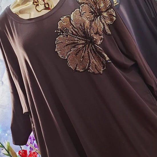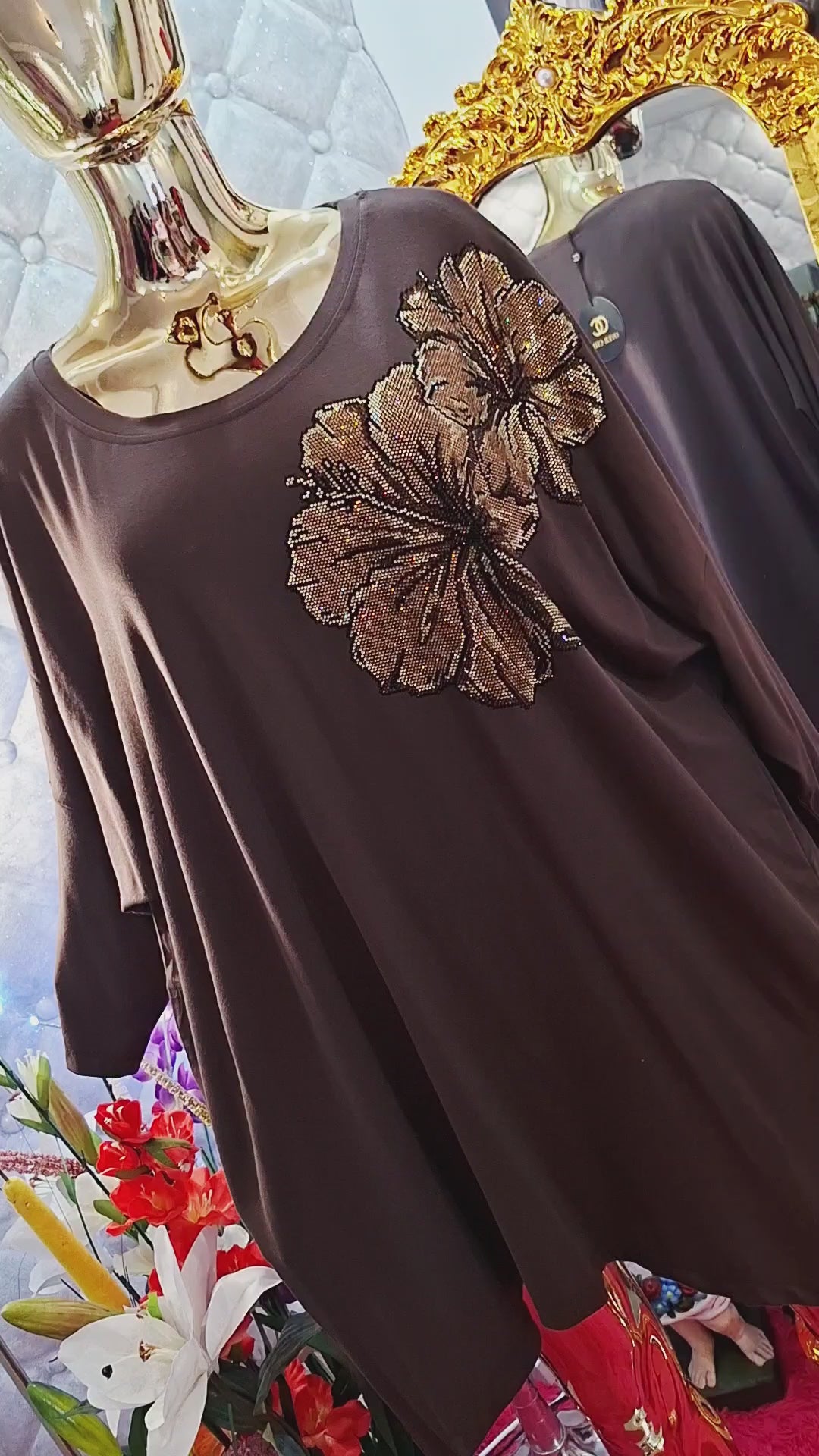 ✨ Oversized-Tunika mit goldenen Zirkonen und Blumen ✨ Strahlen Sie stilvoll mit dieser wunderschönen Oversized-Tunika,