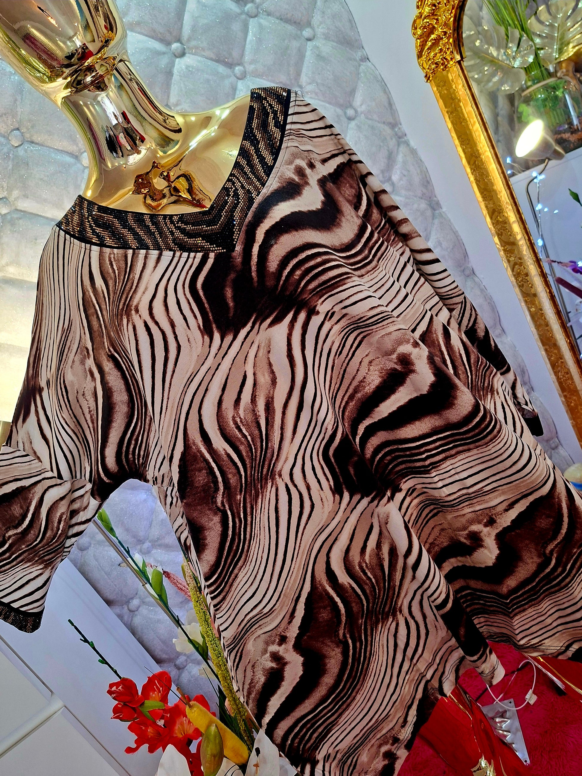 🐆 Lange Tunika / Kleid - Türkisches Modell mit Leo-Muster und goldenen Details ✨