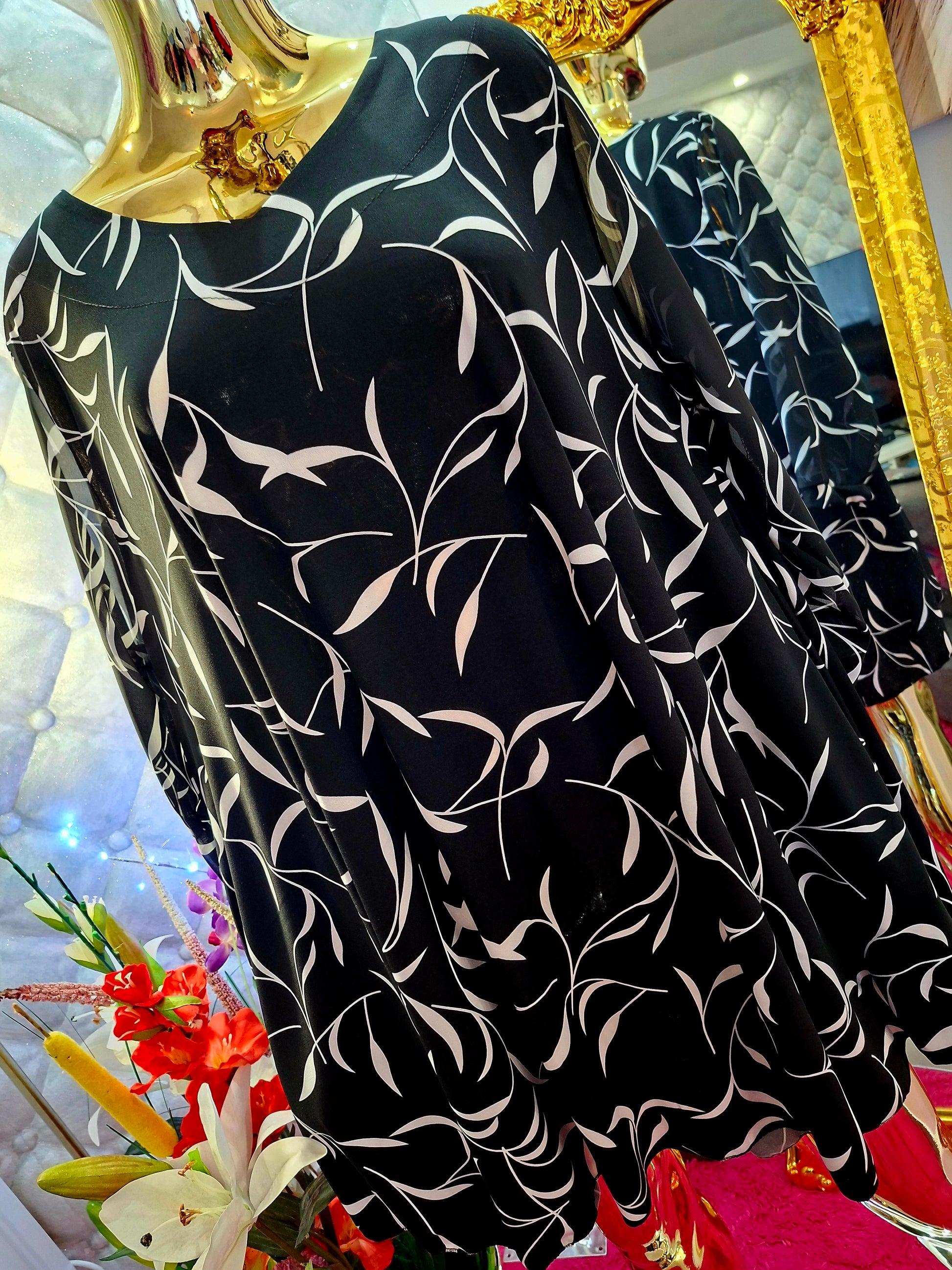 Der schwarze Hintergrund mit den rundherum weißen Blütenblättern – sowohl auf der Vorder- als auch auf der Rückseite – wirkt sehr geschmackvoll, zeitlos und elegant.