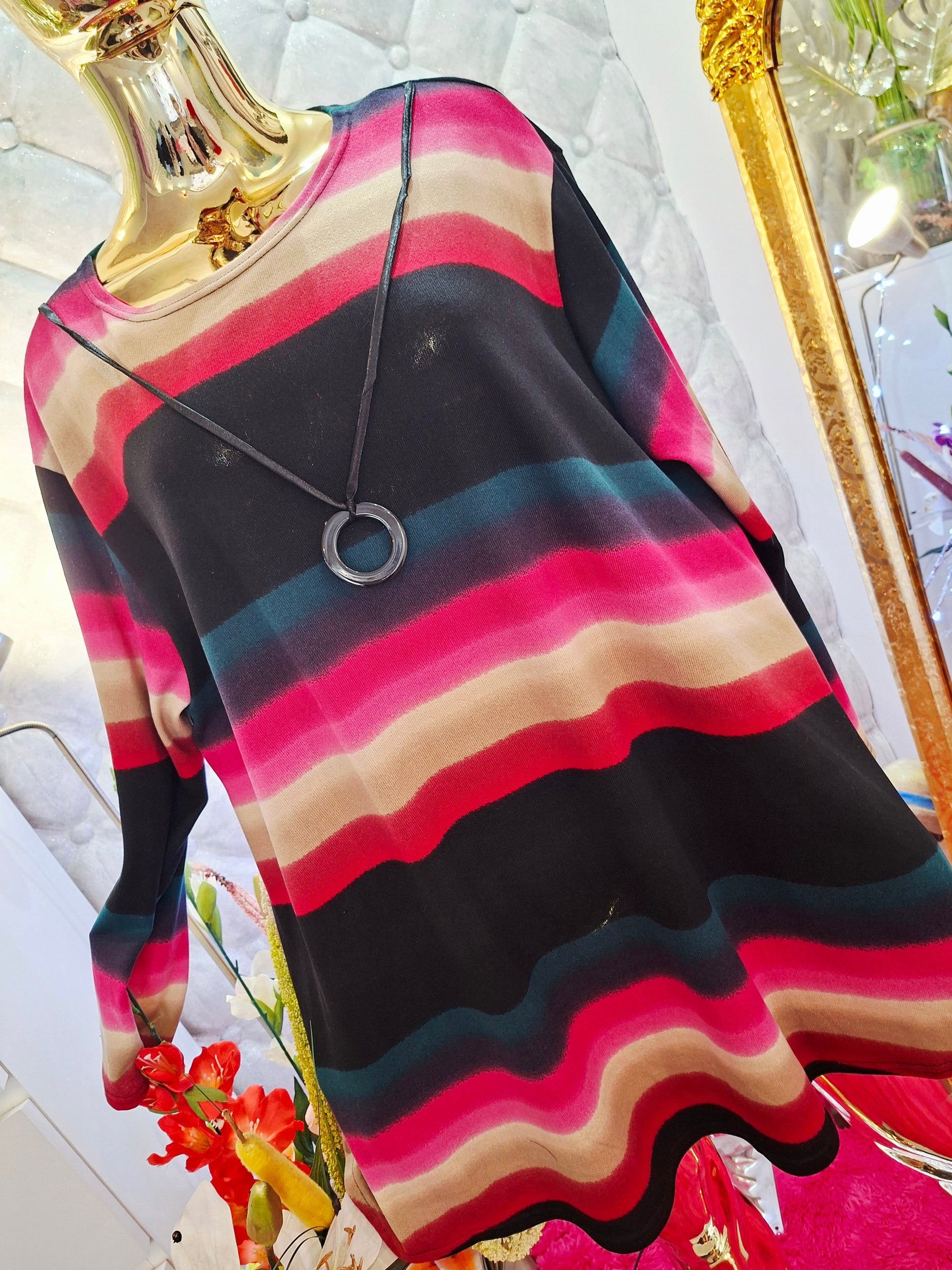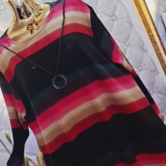 Súčasťou svetríka je vložený prívesok/, ktorý dodáva modelu elegantný a originálny detail. Dúhové farby dodávajú veselý a hravý vzhľad, takže tento svetrík sa stane vaším obľúbeným kúskom na každodenné nosenie.
