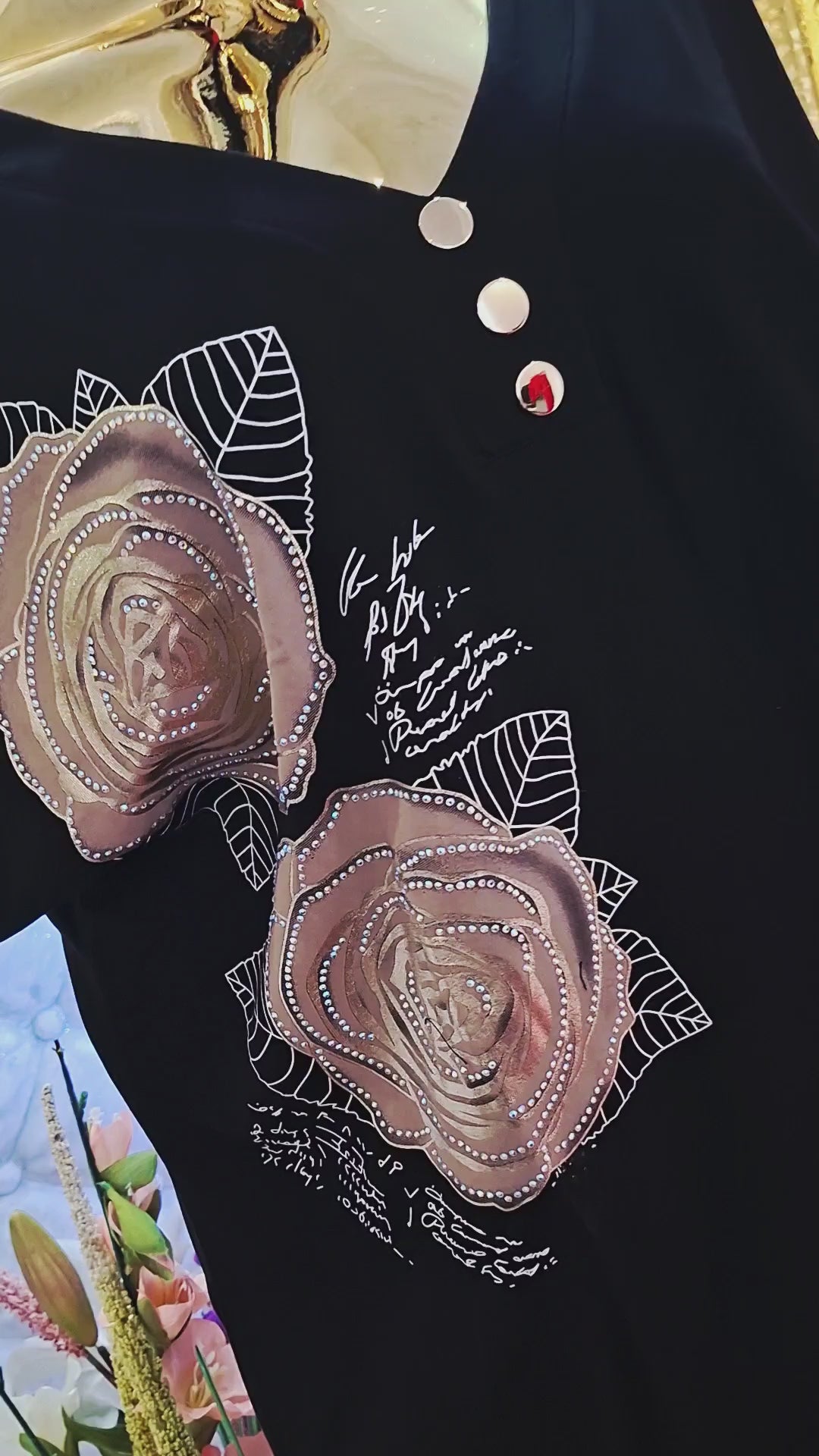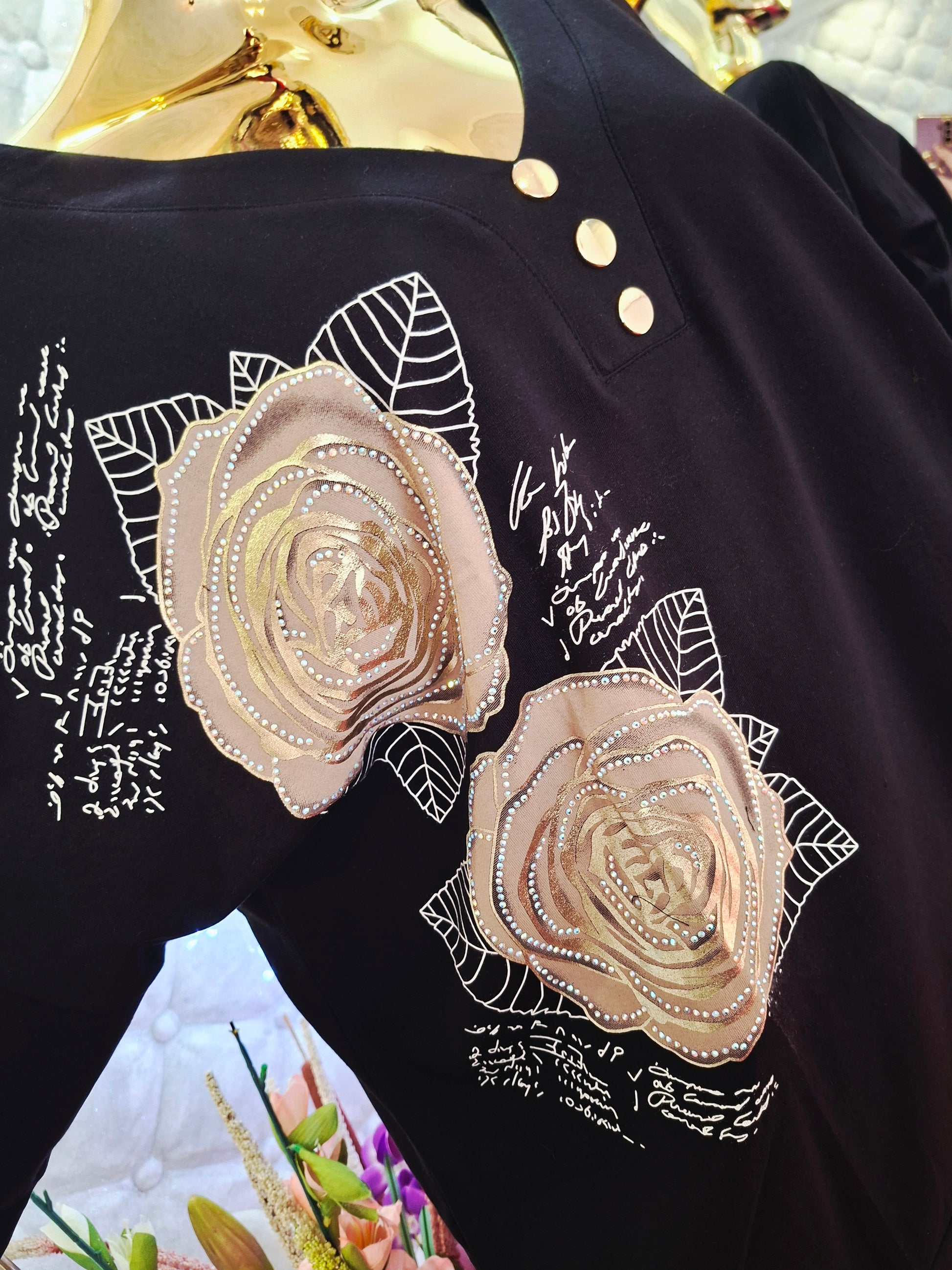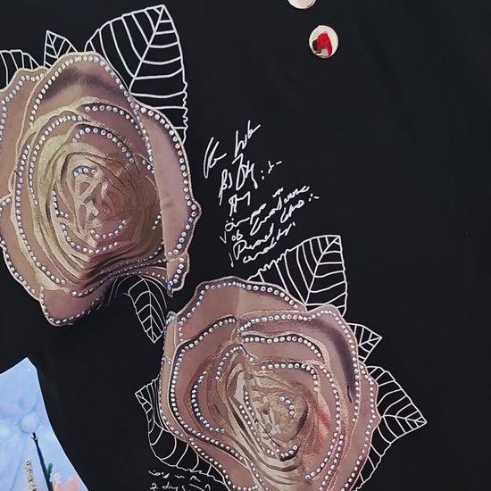 Na prednej časti nájdete dva krásne kvietky celé vyšívané, ktoré tunike dodávajú nežný a sofistikovaný vzhľad. Jemné písmenká decentne dopĺňajú dizajn a robia tuniku výnimočnou.