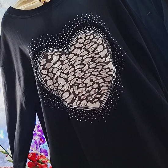 💖 Bavlnená tunika s dlhými rukávmi a vreckami zirkonové srdiečko 💖