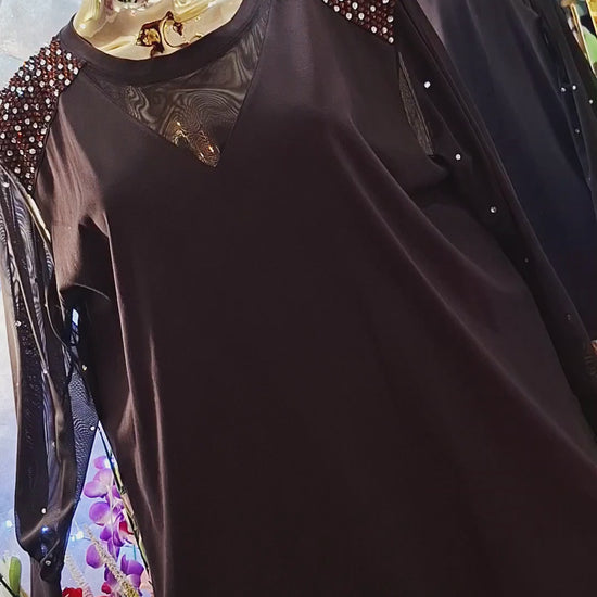 🤎 Hnedá elegantná tunika s tylovým detailom – turecký model 🤎