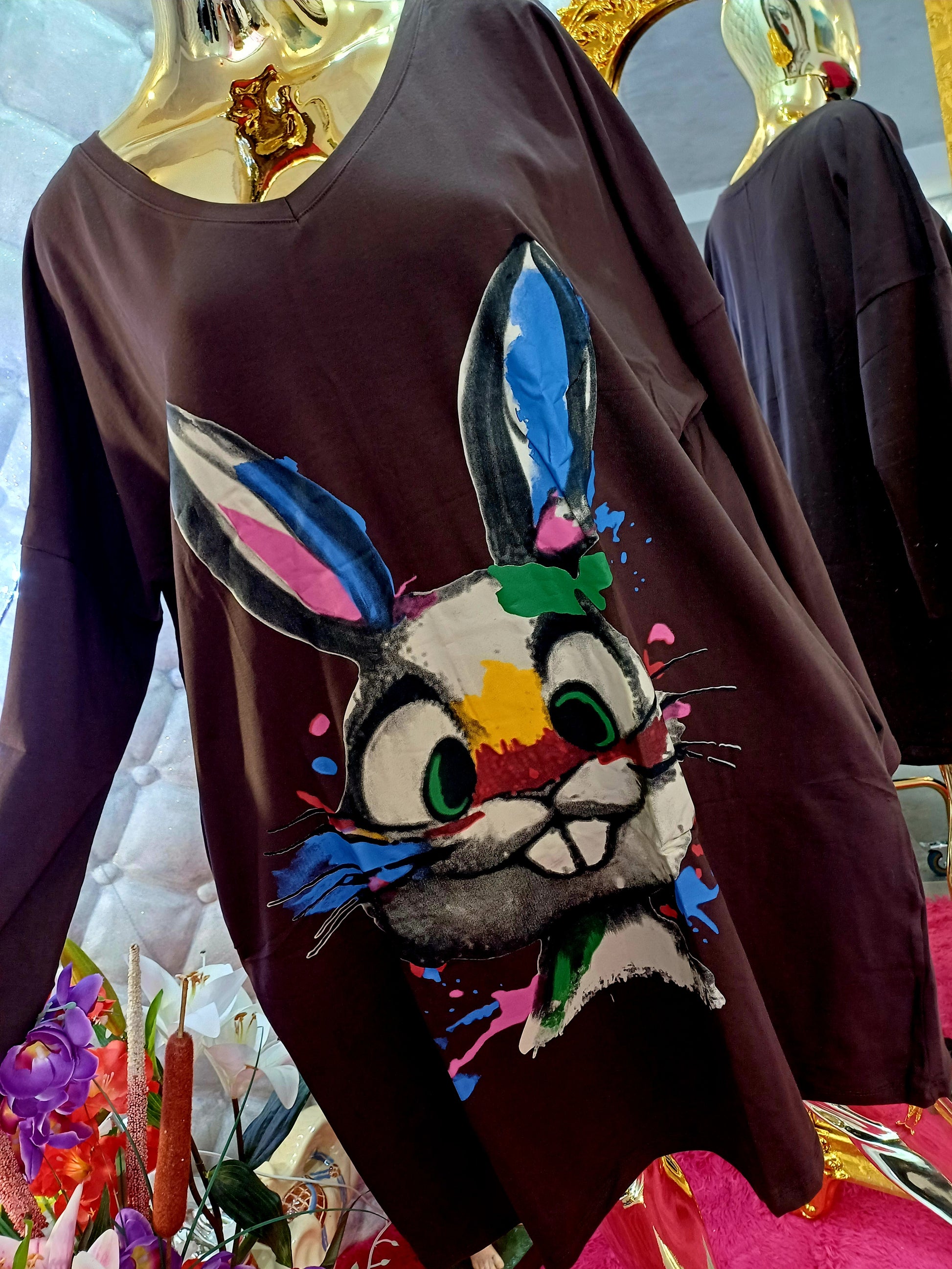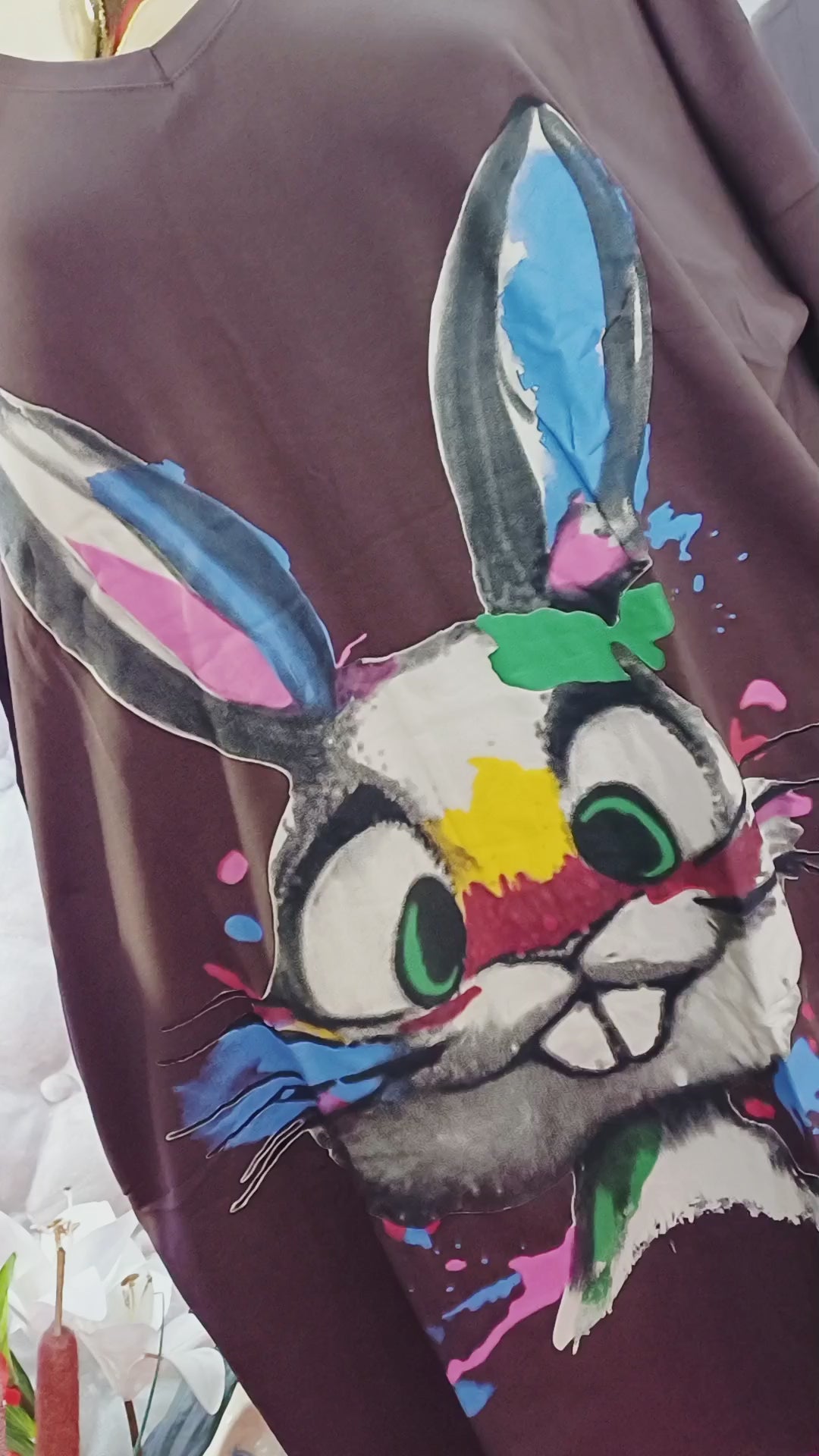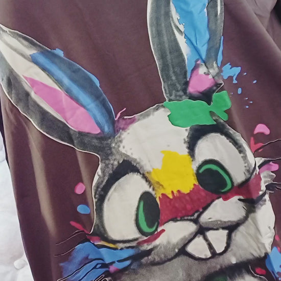 Krásna bavlnená tunika/šaty s veľkým zajačikom💞😍Hnedá,veľký obrázok zajačika, pohodlné vrecká, dlhý strih