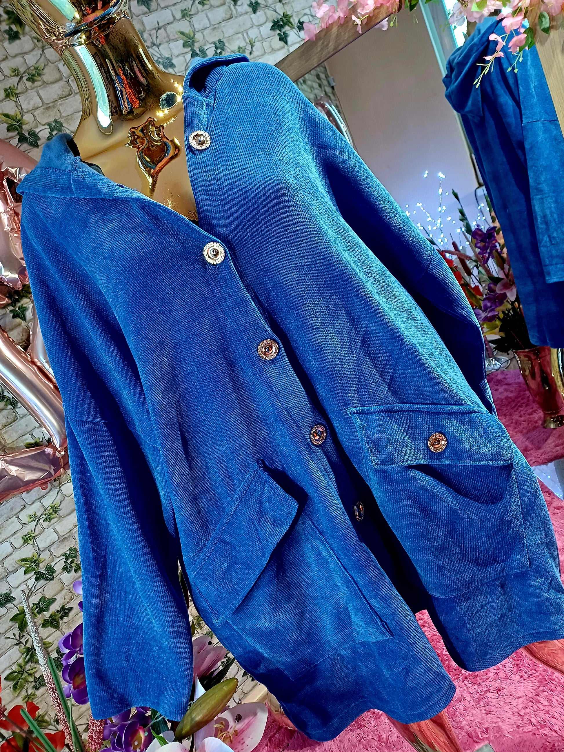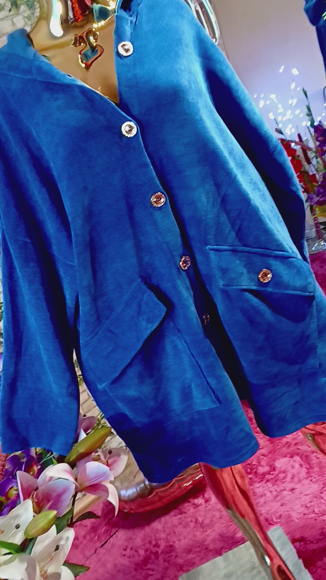 Tento trendy nadrozmerný kabát z príjemného vrúbkovaného materiálu je ideálny na chladné dni. Má praktickú kapucňu, ktorá vás ochráni pred vetrom, a hlboké vrecká na ruky či drobnosti. Voľný strih sa krásne prispôsobí každej postave a dodá vám ležérny, moderný vzhľad. Perfektný k džínsom, legínam aj šatám.